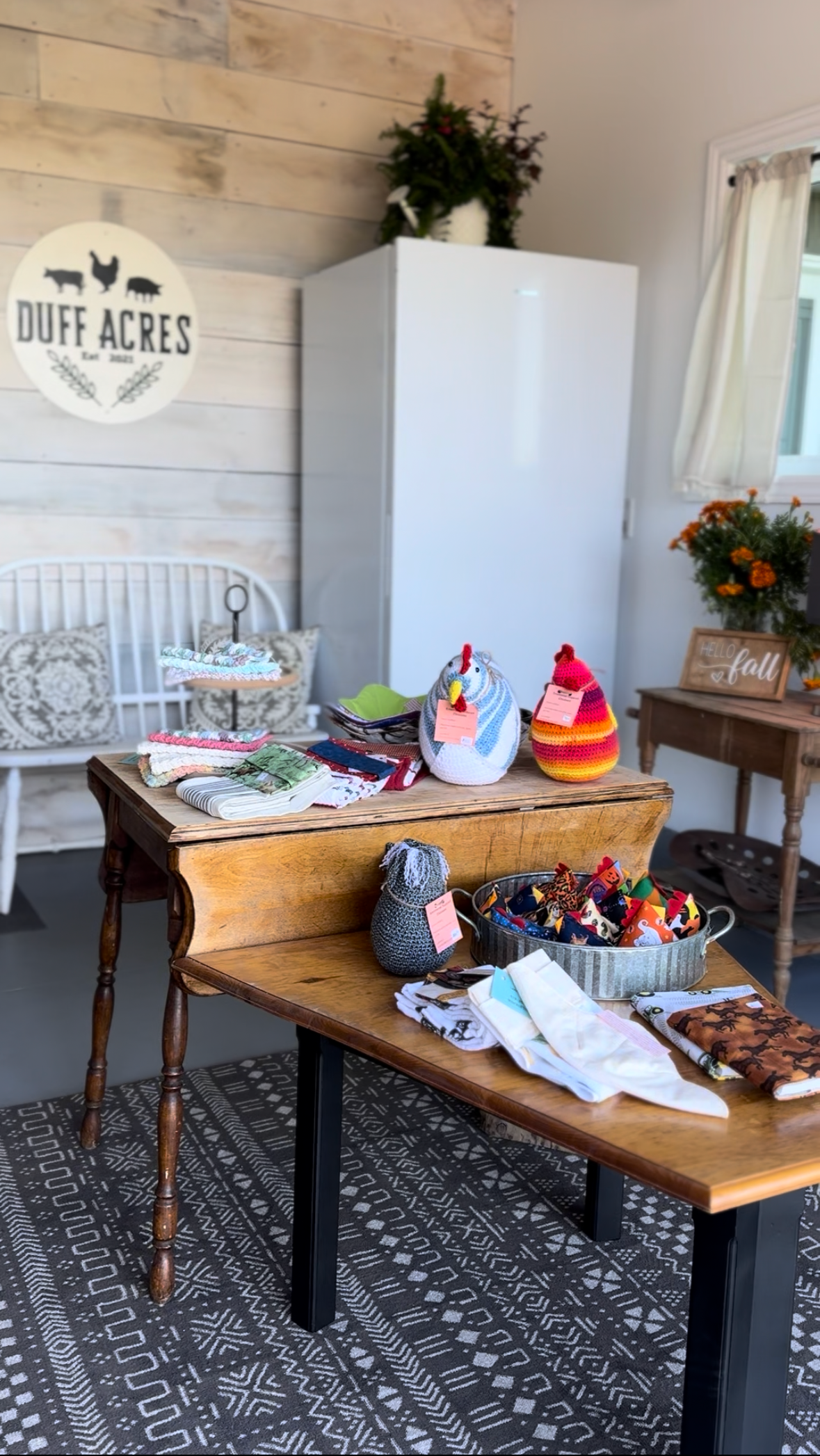 We’re proud to feature a variety of talented local vendors who share our values of quality, sustainability, and community. Find products from these amazing local businesses at Duff Acres:
